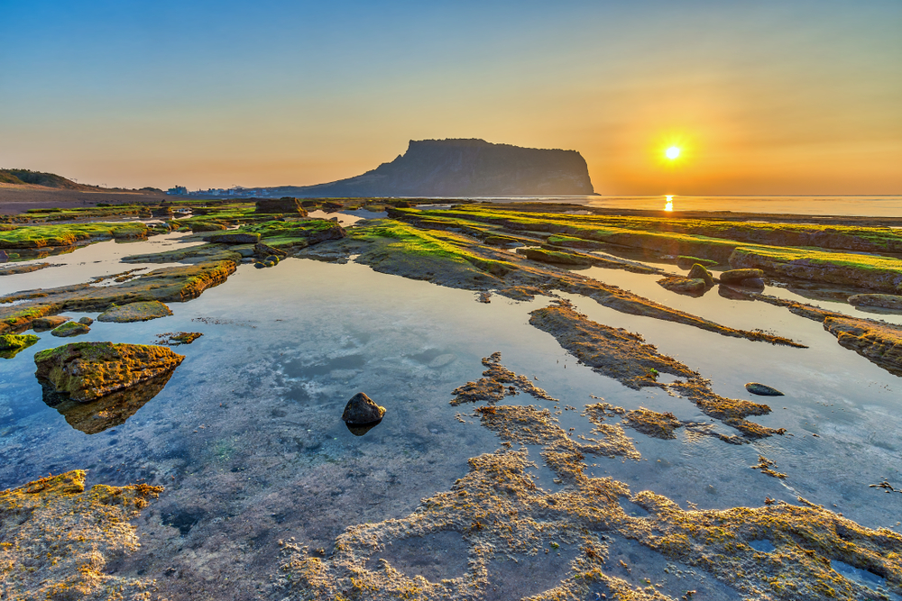 Jeju est la célèbre île balnéaire de Corée et Seongsan Ilchulbong est sans doute le plus bel endroit de l’île. C’est l’endroit idéal pour observer le lever du soleil, car il offre une vue sur l’eau, l’île d’Udo et le reste de Jeju depuis un belvédère situé à 180 mètres de hauteur. La crête a été créée il y a seulement 5 000 ans, lorsqu’une coulée de magma sous l’océan a fait surgir un cône de tuf de la surface de l’île ; elle est donc extrêmement jeune en ce qui concerne les formations géologiques. Il s’agit donc d’une formation géologique extrêmement jeune. Considérez-vous comme chanceux qu’elle existe, car elle offre la plus belle vue de la région.