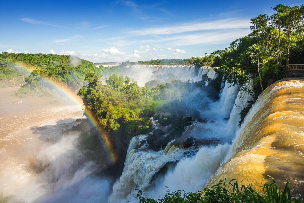 Savourez un délicieux petit-déjeuner, puis traversez la frontière avec votre famille pour explorer la partie argentine de Foz do Iguaçu (connue sous le nom d’Iguazú en espagnol). À votre arrivée, prenez le train panoramique (ou optez pour la promenade de 4 km, en fonction de votre âge et de votre forme physique). Ce trajet amusant vous mènera au chef-d’œuvre d’Iguazú, la série de chutes en fer à cheval connue sous le nom de Garganta del Diablo (Gorge du diable). Admirez la beauté de plus de 63 566 pieds cubes (1 800 m3) d’eau dégringolant sur plus de 260 pieds (80 m) dans des bassins enveloppés de brume.