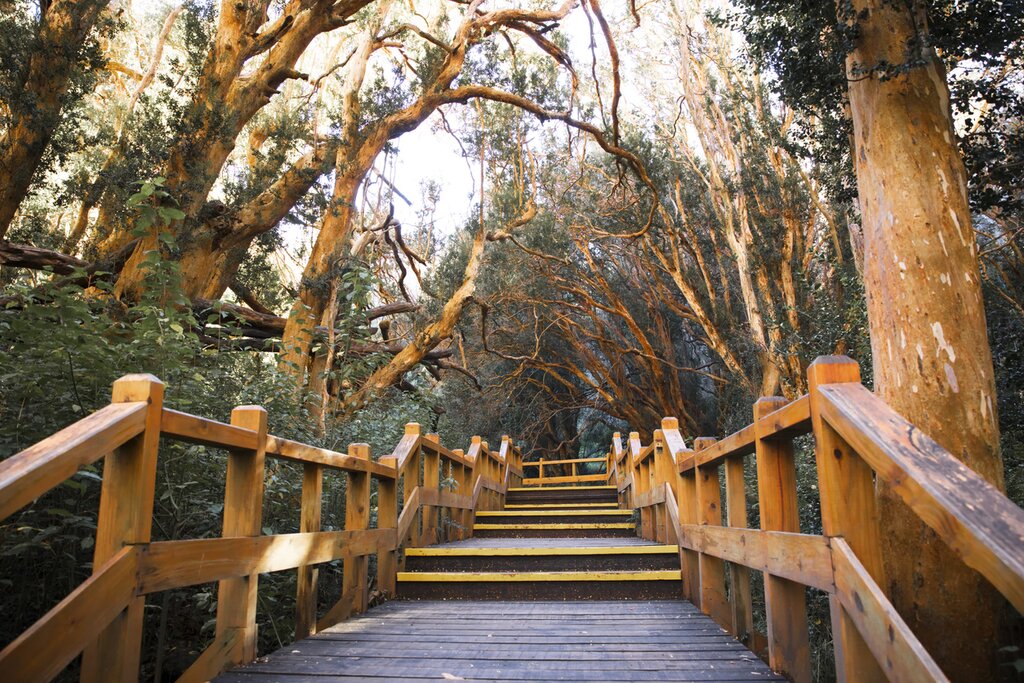 Après l’île, vous visiterez la partie de la péninsule de Quetrihué du parc national Los Arrayanes. Ce parc relativement petit (seulement 17,3 km²) abrite une vaste forêt d’arrayán (myrte du Chili). Les fines tiges rouges de ces arbres exotiques s’élancent vers le ciel comme de longs doigts. Des allées en bois traversent le parc, ce qui vous permet de profiter de la forêt à votre guise. La légende veut que Walt Disney se soit inspiré de la forêt de Bambi lors d’une visite à Los Arrayanes.