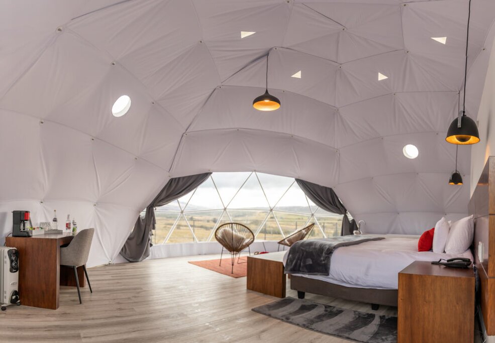 À votre arrivée, vous découvrirez le luxe du glamping en vous installant au Cotopaxi Sanctuary Lodge. Niché dans les prairies de páramo à 3 600 mètres d’altitude, ce lodge est un nouveau concept d’hospitalité. Il fait partie d’une hacienda privée qui propose des tentes dômes spacieuses équipées de lits douillets, de salles de bains privées, de chauffage et de terrasses donnant sur le pic enneigé du Cotopaxi. La vue s’étend également à la forêt, aux ruisseaux, aux cascades et aux rivières qui entourent le lodge.