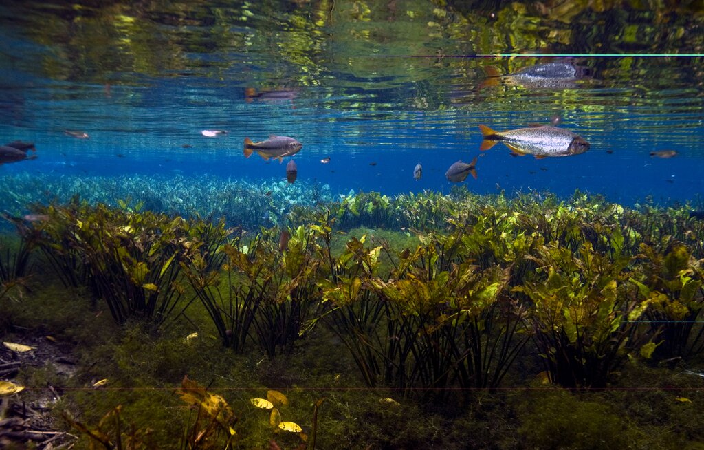 Aujourd’hui, vous explorerez une autre des rivières les plus limpides de la région : le Río Sucuri. Commencez par un transfert de 20 à 30 minutes vers Barra do Sucuri, une station de sports d’aventure, puis marchez à travers la forêt jusqu’à la rivière, où vous serez équipés de gilets de sauvetage. Ensuite, vous pouvez sauter sur un bateau et naviguer sur 1 300 m pour atteindre votre lieu de plongée. Pendant que vous faites de la plongée avec tuba, vous flotterez lentement jusqu’au rivage, de sorte que vous n’aurez pas à vous soucier de nager. L’eau claire de la rivière offre une excellente visibilité, ce qui vous permet de voir le lit de la rivière orné de plantes aquatiques luxuriantes et de formations rocheuses complexes.