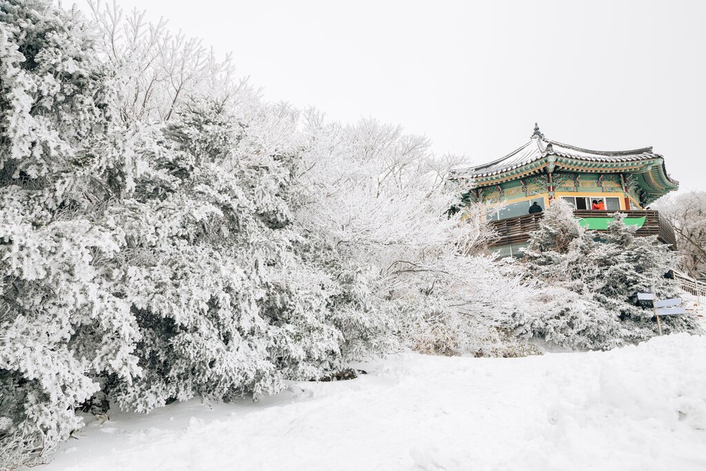 - Visite du temple enneigé de Sinheungsa dans le parc national rocheux de Seoraksan.