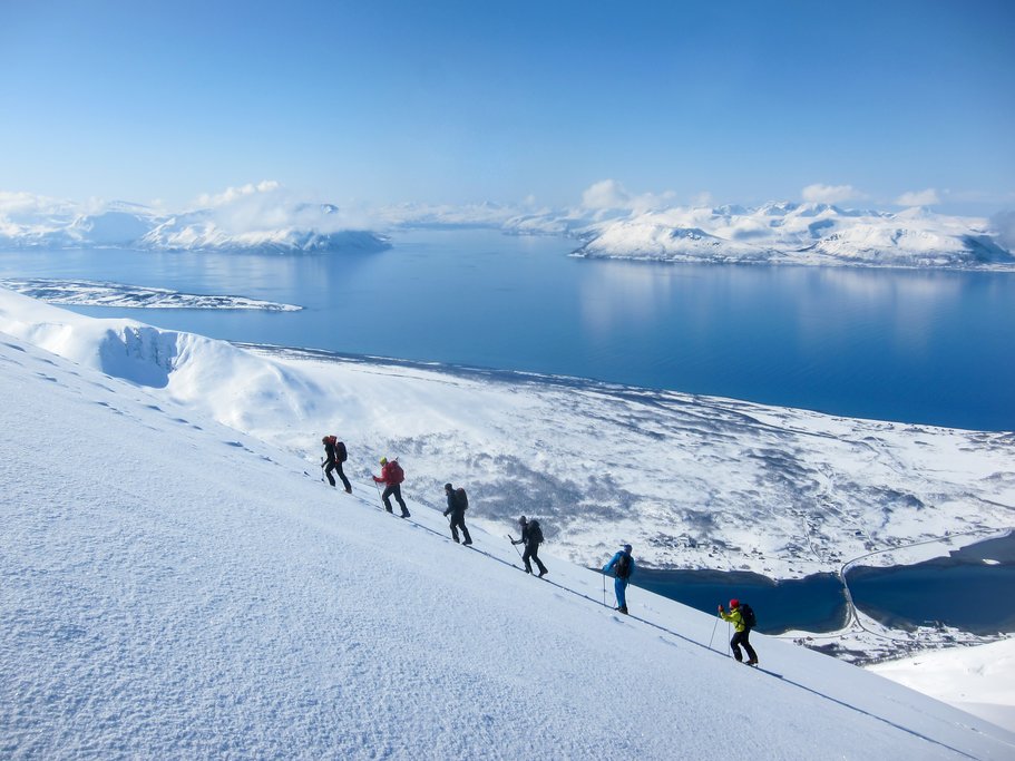 Ce matin, vous quitterez Tromsø en direction de l’est, grâce à un transfert de deux heures vers Lyngen. Cette région éblouissante du comté de Troms est célèbre pour ses paysages arctiques, qui comprennent des fjords spectaculaires et les Alpes de Lyngen. Vous arriverez à ces impressionnants sommets dans la matinée pour une journée entière passée à dévaler les pentes lors d’une excursion de ski privée. Vous n’aurez pas à vous soucier de la logistique, car vous serez accompagné d’un guide arctique qui connaîtra les endroits parfaits pour vous emmener en fonction de votre niveau de compétence.