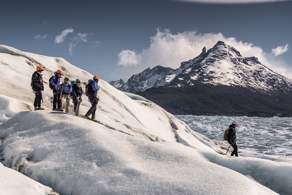 La partie W Trek du voyage est peut-être terminée, mais d’autres aventures épiques en plein air vous attendent aujourd’hui. Ce matin, rendez-vous au camp de base de BigFoot pour une randonnée sur glace. Tout d’abord, prenez un bateau jusqu’à Isla Islatak, où vous commencerez une randonnée d’une heure jusqu’à la moraine glaciaire. Lorsque vous arriverez sur la glace, vous vous équiperez et recevrez une démonstration de sécurité. Équipé d’un piolet, de crampons, d’un casque et d’un harnais, vous commencerez l’aventure en marchant pendant environ 2,5 heures à la surface du glacier Grey, en passant par ses crevasses, ses ruisseaux et ses tunnels. Ensuite, retour au camp pour le déjeuner et le dîner.