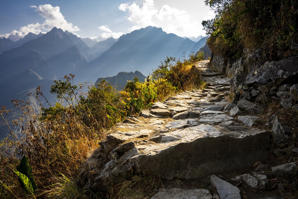 Commencez la journée tôt, en prenant une route panoramique vers Chinchero, que les Incas considéraient comme le lieu de naissance de l’arc-en-ciel. Dans ce village andin typique, vous verrez de vastes terrasses incas et de jolies églises de l’époque coloniale. Ici, vous ferez une courte randonnée sur le célèbre Chemin de l’Inca en compagnie de lamas et de guides locaux. La marche vous conduira sur l’ancien sentier pavé, le long d’une lagune bleu clair scintillante entourée de paysages andins, alors que vous descendrez de 3 420 mètres à 2 871 mètres.