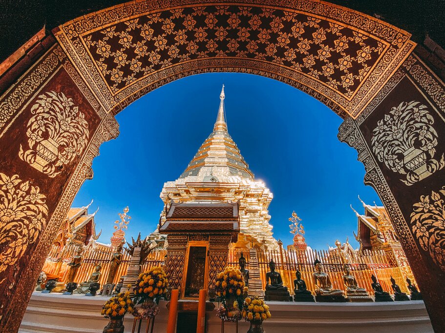Il est temps de partir vers le nord ce matin. Votre chauffeur vous transférera à l’aéroport de Bangkok pour un vol d’une heure et demie à destination de Chiang Mai, surnommée la « Rose du Nord ». La plus grande ville de la région septentrionale de la Thaïlande a été la capitale du royaume de Lanna du XIIIe au XVIIIe siècle, qui existait indépendamment du royaume de Siam (Thaïlande). Une grande partie de l’architecture distinctive et des sites historiques de Chiang Mai subsiste aujourd’hui, y compris la vieille ville entourée de douves. À votre arrivée, vous vous installerez à votre hôtel.