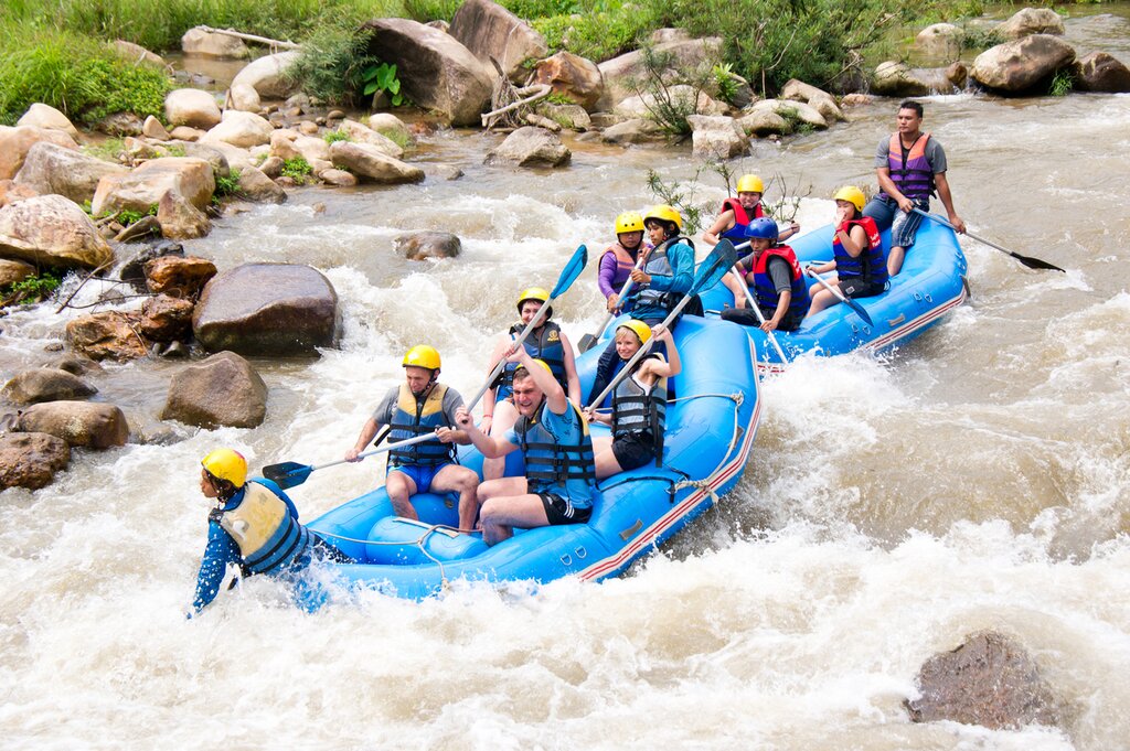 Bien que principalement connue pour ses plages et sa vie nocturne, Phuket offre également de nombreux sports d’aventure passionnants. L’excursion d’aujourd’hui en tire pleinement parti en proposant plusieurs activités de plein air passionnantes : rafting en eaux vives, randonnées en VTT et tours en tyrolienne. Commencez par un transfert matinal vers un camp de rafting en eaux vives situé sur une rivière au cœur de la jungle thaïlandaise. Là, vous recevrez une formation avant d’enfiler un casque et une veste et de partir pour un parcours de 5 km.