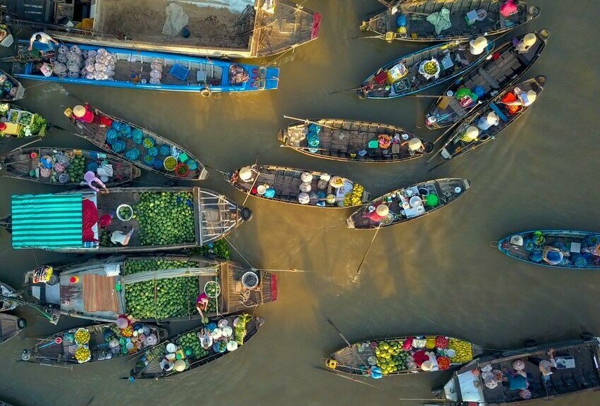 Ce matin, vous partirez pour une excursion d’une journée dans le célèbre delta du Mékong. Vous commencerez par un transfert d’une heure et demie vers le sud jusqu’à My Tho. Cette ville fluviale est située dans la province de Tien Giang, aux portes du Mékong. Votre visite d’une journée complète des magnifiques paysages fluviaux commence par une promenade en bateau sur le Mékong. Au cours de ce voyage pittoresque, vous passerez devant des îles tranquilles tout en sirotant un jus de noix de coco frais (le Mékong est célèbre pour ses cocoteraies). L’excursion en bateau se termine par une visite de l’un des immenses marchés flottants de la région, où des centaines de bateaux sillonnent les eaux pour vendre des produits frais.