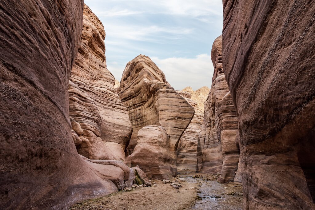 Bienvenue en Jordanie ! Votre chauffeur vous attendra à votre arrivée à Amman, la capitale, mais vous n’aurez qu’un bref aperçu de cette métropole du désert lorsque vous commencerez le transfert privé de deux heures vers le Wadi Numeira, également connu sous le nom de vallée de la mer Morte. Le terme wadi désigne généralement une vallée fluviale qui reste sèche pendant la majeure partie de l’année. À votre arrivée, votre aventure commence par une randonnée guidée privée dans ce canyon de grès qui semble tout droit sorti de « La Guerre des étoiles ». Suivez le lit de la rivière asséchée plus profondément dans le Wadi Numeira pour voir des formations rocheuses ondulantes et les traces des sources qui traversent cette gorge rocheuse.
