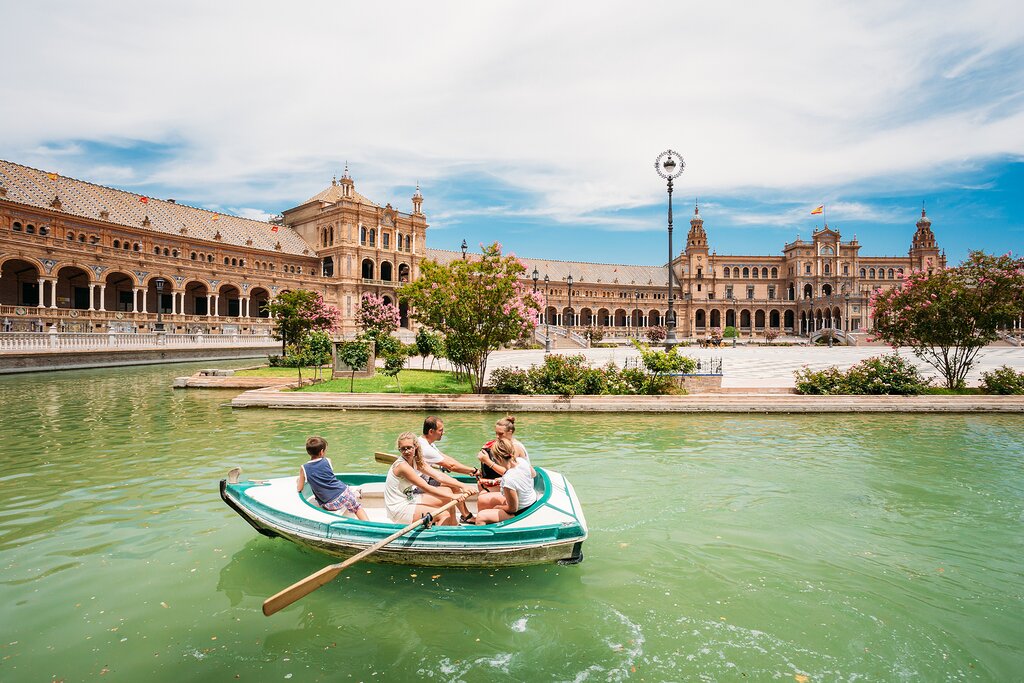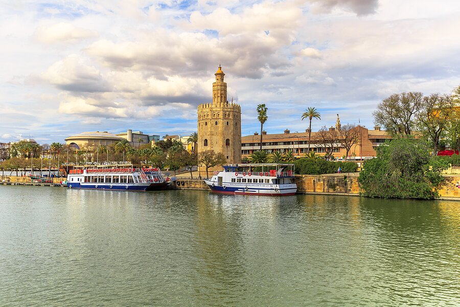Plus tard dans la journée, un service de voiture privée viendra vous chercher à votre hôtel madrilène et vous transférera à la gare pour votre voyage vers votre prochaine destination, Séville. Le trajet dure environ 2,5 heures, avec des paysages magnifiques qui occuperont toute la famille pendant le trajet. Après votre arrivée et votre enregistrement à l’hôtel de Séville, partez pour une croisière relaxante sur le fleuve Guadalquivir.