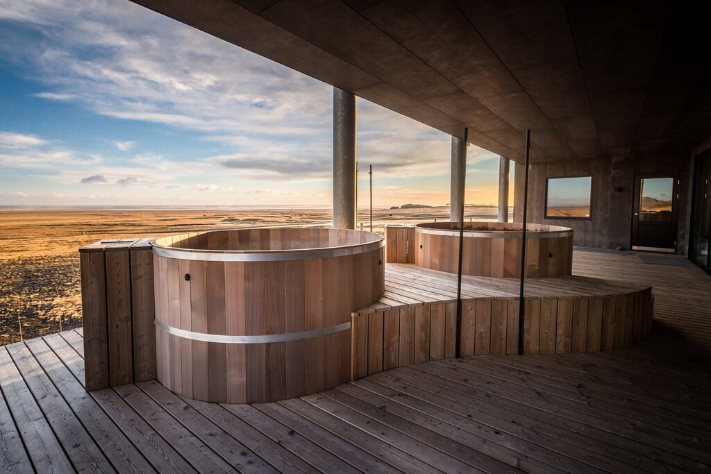 Ensuite, vous vous rendrez à l’hôtel Húsafell, un établissement de 48 chambres, un refuge de luxe situé à l’orée des spectaculaires hautes terres centrales d’Islande, dont la situation, à l’ombre du glacier Langjökull, offre des vues incroyables sur les insaisissables aurores boréales. Les chambres et les suites présentent une esthétique scandinave chic et épurée, avec des planchers chauffants, un mobilier moderne et des œuvres d’art originales de Páll Guðmundsson. Détendez-vous dans l’un des bains à remous de l’hôtel après une longue journée et dînez dans le restaurant confortable en admirant les vues panoramiques sur les montagnes.