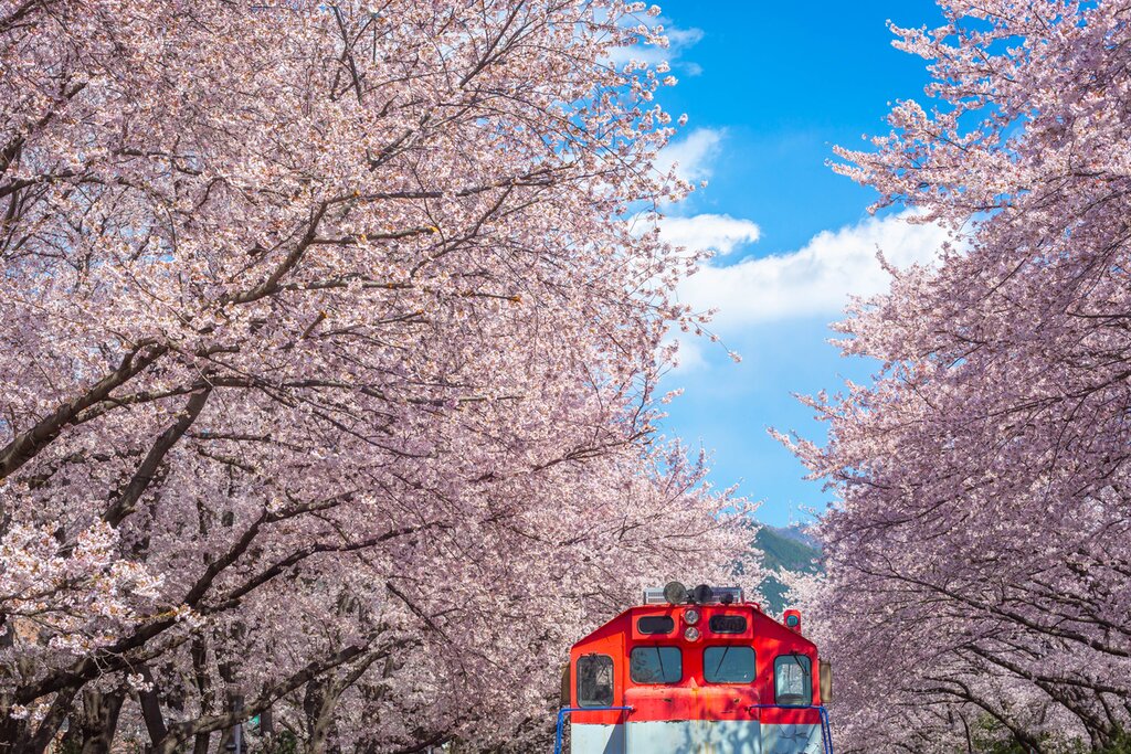 Pendant 30 minutes, vous vous rendrez à Jinhae, l’une des villes printanières les plus célèbres de Corée du Sud. Plus de 360 000 cerisiers sont plantés dans la ville, qui prend des allures de conte de fées. Promenez-vous le long du ruisseau Yeojwacheon, avec ses charmants cafés et sa voûte de fleurs au-dessus de l’eau, puis visitez la gare de Gyeonghwa, un ancien dépôt ferroviaire aujourd’hui converti en parc, avec une ligne de chemin de fer désaffectée (avec son train) entourée d’arbres roses. Ensuite, vous retournerez avec votre chauffeur à Busan pour la nuit.