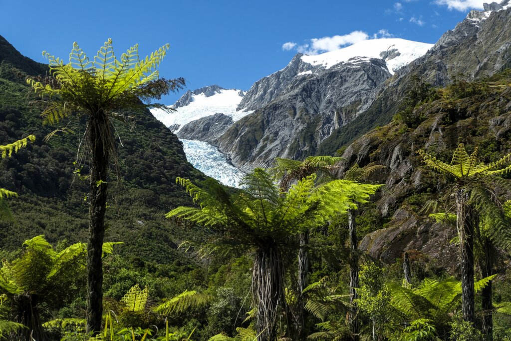 Aujourd’hui, vous pouvez explorer Franz Josef / Waiau à votre guise. Si vous vous sentez l’âme d’un aventurier, vous pouvez faire un vol exaltant en hélicoptère jusqu’au sommet du glacier Franz Josef / Waiau. Avant d’atterrir sur la glace, vous pourrez admirer le paysage époustouflant et les vues panoramiques de Kā Roimata o Hine Hukatere. Vous devrez ensuite vous faufiler dans d’étroites crevasses, serpenter entre des tours de glace, glisser dans des grottes de glace ou, si vous avez de la chance, faire les trois à la fois !