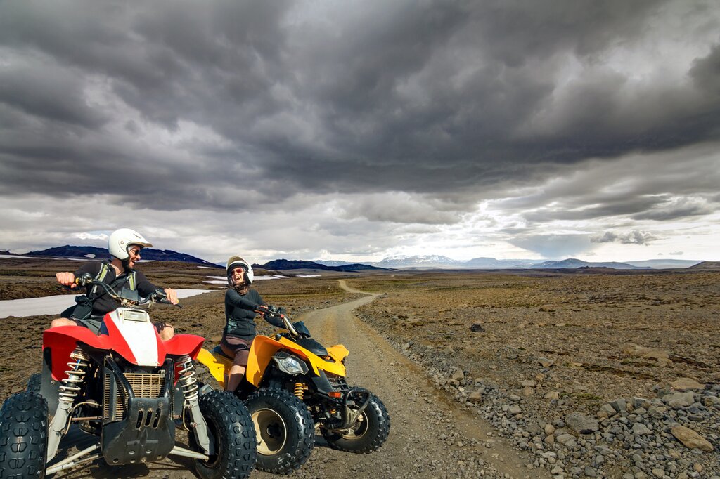 Après avoir fait pomper votre sang, reposez vos jambes en participant à une aventure en quad (ATV). Cette passionnante randonnée de deux heures commence au pied de l’impressionnant glacier Mýrdalsjökull. De là, vous traverserez des paysages sauvages et diversifiés, en passant devant les vestiges d’une épave d’avion DC3. Vous poursuivrez votre route sur des plages de sable noir, en vous arrêtant à des points de repère et à des belvédères comme ceux de la magnifique péninsule de Dyrhólaey, qui est la pointe la plus méridionale de l’Islande.