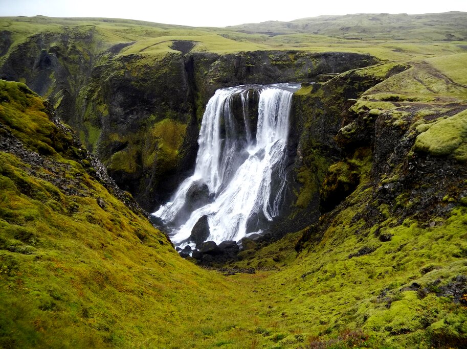 Aujourd’hui, vous continuerez à explorer la réserve naturelle de Fjallabak, cette fois dans sa région sud. À bord de la Jeep, vous vous rendrez à des sites tels que Fagrifoss (littéralement « la belle cascade »). Cette cascade de 25 m est située près de la région volcanique de Lakagígar, caractérisée par des cratères et des fissures. La beauté des chutes n’est que renforcée par leur contraste avec les paysages volcaniques environnants.