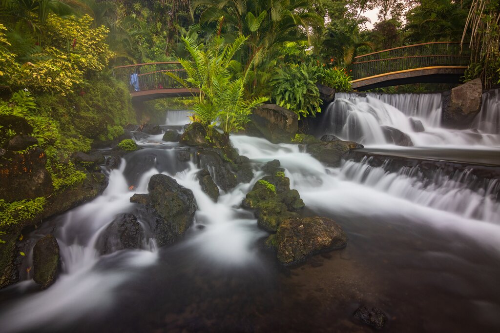 Plus tard, vous arriverez à La Fortuna, une ville située au pied de l’emblématique volcan Arenal. Vous vous installerez à votre hôtel : Tabacón Thermal Resort & Spa. Toute la région est connue pour ses sources thermales, et cet hôtel de luxe 4,5 étoiles fait grand usage de ces merveilles géologiques. Après l’enregistrement, vous pourrez profiter d’un long bain dans le réseau de sources chaudes de l’hôtel. Pour le dîner, vous pouvez choisir entre les deux restaurants de l’hôtel ou réserver un dîner privé de six plats dans un décor de forêt tropicale.