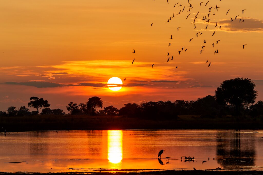 Remplacez le cheval par un véhicule 4×4 à toit ouvert pour naviguer sur le terrain accidenté du Pantanal. Traversez des marais gorgés d’eau et des plaines sèches, en profitant d’une vue imprenable sur la flore et la faune. Le soir, retournez à la rivière pour admirer le coucher de soleil sur l’eau, puis montez à bord d’un autre véhicule 4×4 pour trouver les résidents nocturnes des zones humides lorsqu’ils sont les plus actifs. À l’aide d’un projecteur, le guide vous indiquera des animaux comme les renards et, si vous avez de la chance, l’insaisissable ocelot. Après une journée bien remplie de découverte des zones humides, retour à la fazenda pour la nuit.