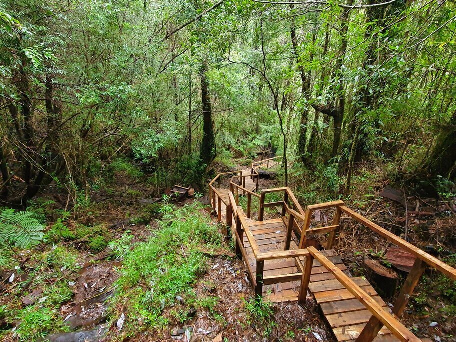 Il est temps de lacer les bottes pour votre première randonnée en Patagonie. Après le petit-déjeuner, transfert vers la ville côtière de Lenca, porte d’entrée du parc national Alerce Andino. Abritant la luxuriante forêt tropicale valdivienne, le parc s’étend sur 970 000 acres (40 000 ha) de vallées, de lagunes turquoises et de forêts d’alerces. Les alerces sont les arbres les plus grands et les plus anciens d’Amérique du Sud. Ils peuvent atteindre 60 m et vivre jusqu’à 2 500 ans.