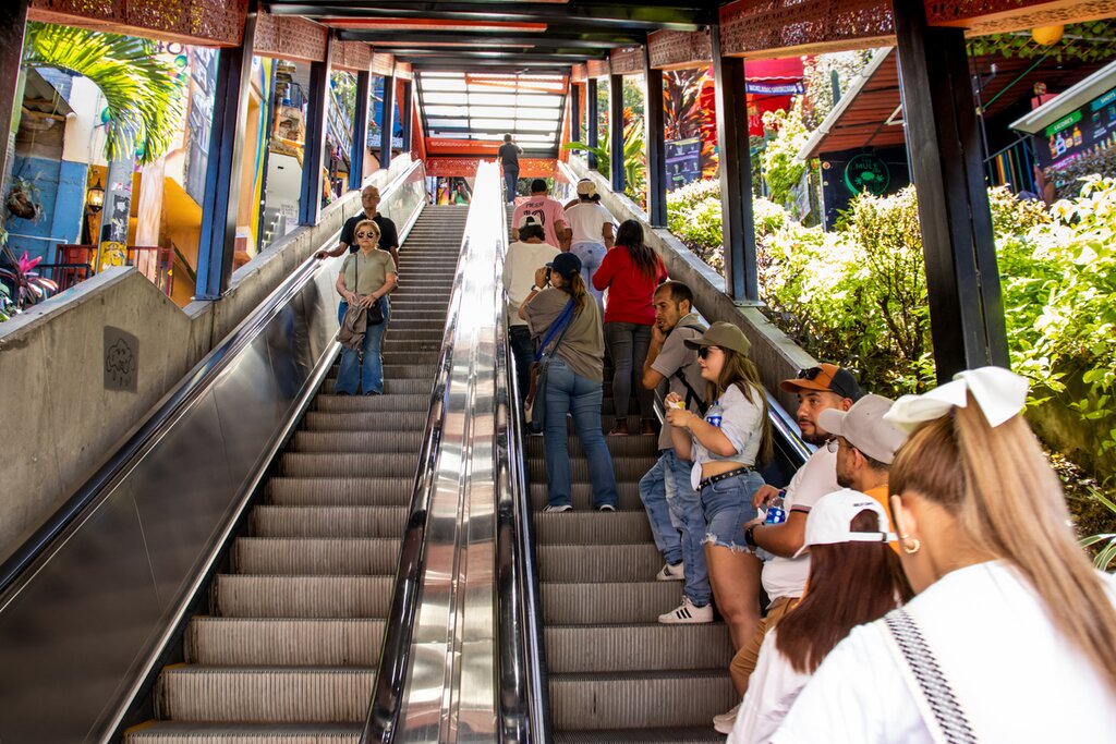 Continuez jusqu’au quartier en plein essor de Perpetuo Socorro, où d’anciens entrepôts et usines abritent aujourd’hui des galeries d’art, des studios de design et des cafés branchés. Entrez et sortez des galeries, admirez l’art de rue coloré et profitez de la scène culinaire locale. Terminez ensuite votre visite par la Comuna 13. Autrefois l’une des zones les plus dangereuses de la ville, ce quartier a connu un renouveau remarquable. C’est aujourd’hui une communauté dynamique connue pour son art de la rue, sa musique et sa culture. Empruntez les célèbres escalators extérieurs du quartier avec les habitants pour profiter d’une vue panoramique sur le quartier.