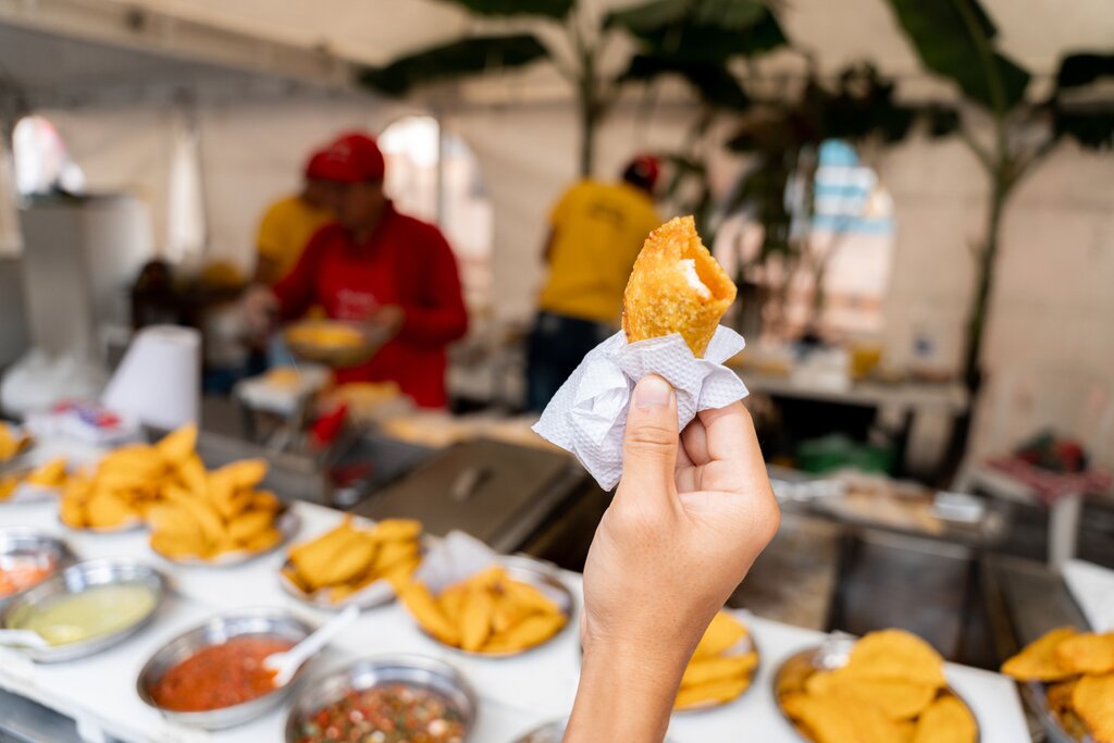 Découvrez les saveurs vibrantes de la cuisine côtière de Carthagène lors de cette visite matinale de la cuisine de rue. En suivant votre guide privé dans la vieille ville, vous rencontrerez des vendeurs locaux proposant une grande variété de plats qui reflètent la fusion des saveurs caribéennes et colombiennes. Arrêtez-vous dans sept échoppes pour goûter des plats appréciés comme les arepas de huevo (galettes de maïs croustillantes farcies d’un œuf) ou les empanadas fraîchement préparées (pâtisseries salées fourrées à la viande, au fromage ou aux légumes). Pour une sucrerie, essayez l’arroz con leche (riz au lait crémeux) ou la cocosette (bonbons à la noix de coco et au sucre).