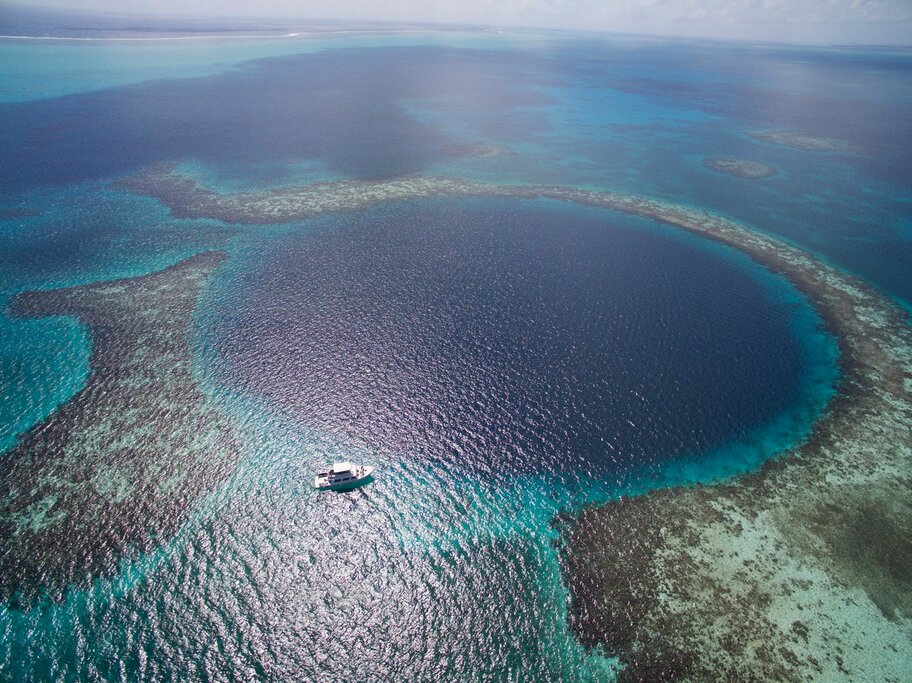 Aucun circuit au Belize n’est complet sans une excursion sur le site de plongée le plus emblématique du pays. Avant le lever du soleil, vous monterez à bord d’un bateau à Caye Caulker et voyagerez pendant 2,5 heures jusqu’au célèbre trou bleu, qui fait partie de Lighthouse Reef. Ce gouffre marin géant et site de plongée populaire s’est formé comme une caverne de calcaire au cours de la dernière période glaciaire et peut même être vu depuis l’espace. Il est unique en raison de sa forme presque parfaitement circulaire, qui mesure 1 043 pieds (318 m) de diamètre et 407 pieds (124 m) de profondeur.