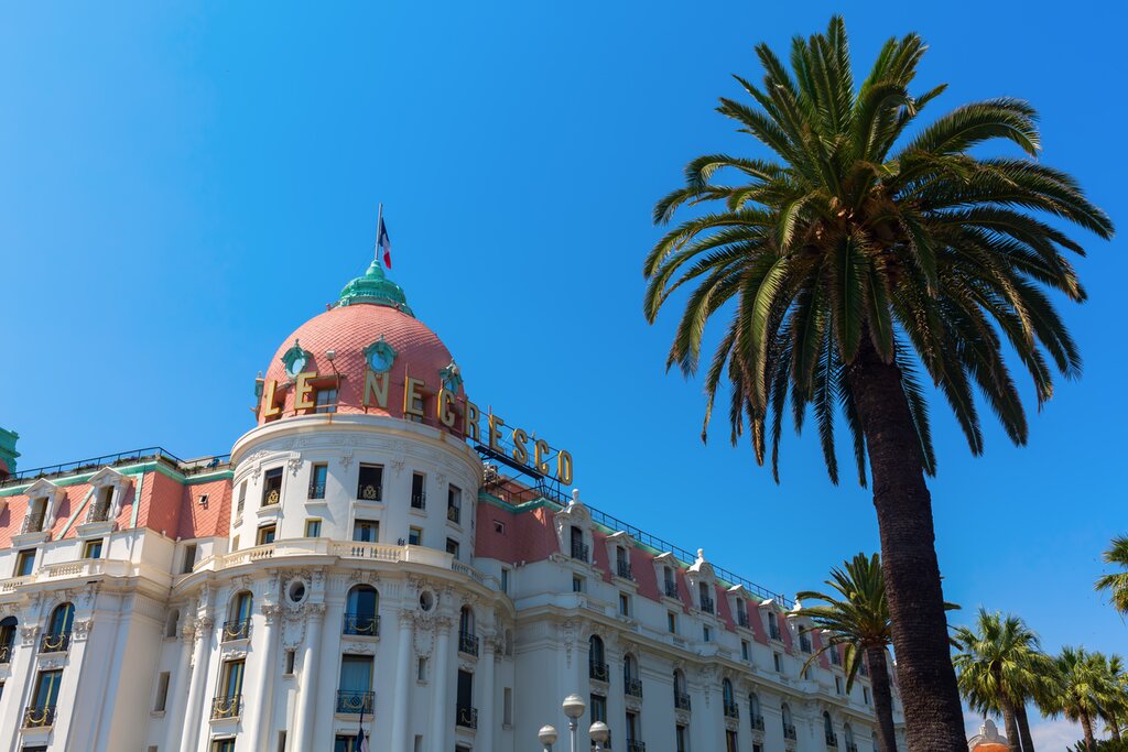 Bienvenue en France ! Votre vol atterrit à Nice, une ville portuaire chic située à l’extrémité nord de la Côte d’Azur. La ville a gagné son surnom, Nissa La Bella (Nice la belle), pour son esprit artistique, ses grandes places et ses plages de galets en forme de croissant. Vous serez accueilli par votre chauffeur et transféré à votre hôtel 5 étoiles, Le Negresco, dont les portes accueillent la jet-set internationale depuis 1913 et qui a compté parmi ses clients Salvador Dalí, la princesse Grace de Monaco, Elton John et les Beatles.