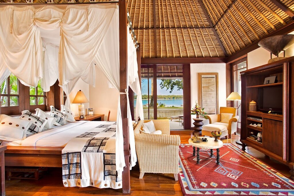 - Détendez-vous sur votre terrasse privée avec vue sur l’océan à l’Oberoi Beach Resort 5 étoiles de Lombok.