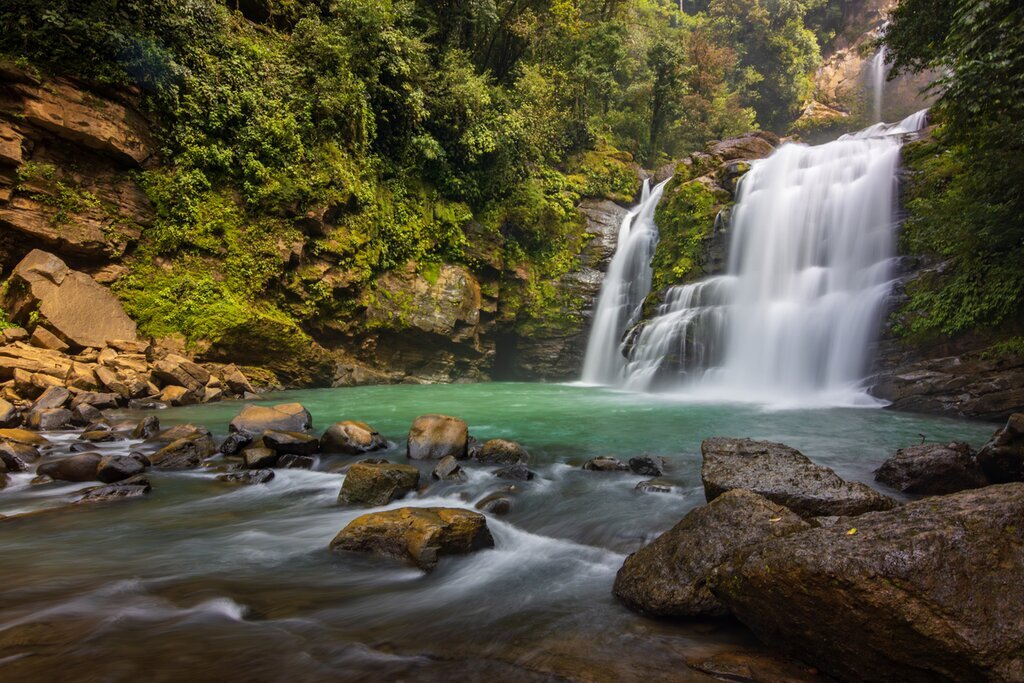 Ce matin, vous rencontrerez votre chauffeur et partirez vers le sud en direction des chutes de Nauyaca, une cascade isolée parfaite pour une sortie romantique. À l’entrée des chutes, vous rencontrerez votre guide et vous embarquerez pour une randonnée panoramique privée (ou à cheval) jusqu’à Nauyaca, un groupe de deux chutes qui plongent de 141 pieds (43 m) par-dessus des falaises dans une lagune cristalline en contrebas. C’est un lieu de baignade idéal, alors n’oubliez pas votre maillot de bain.