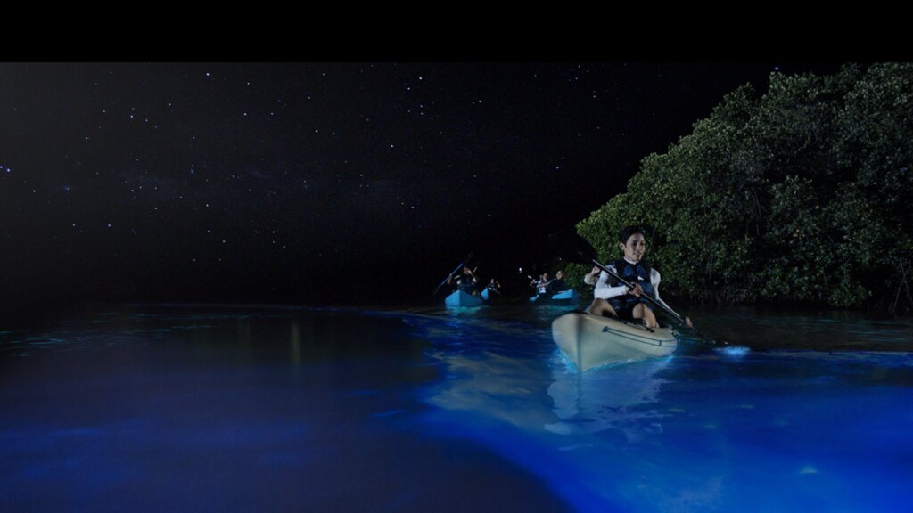 À votre arrivée, vous vous installerez dans une cabane privée au sommet d’un arbre dans votre éco-resort, accessible uniquement par bateau, et vous aurez le reste de la journée libre. Au coucher du soleil, vous rencontrerez un guide et vous vous rendrez à la plage. Ensuite, vous sauterez dans un kayak et pagayerez le long de la côte, apercevant probablement des dauphins à gros nez et des dauphins à long bec en train de jouer. Le point culminant de cette excursion de trois heures se produit une fois la nuit tombée. C’est alors qu’apparaît le plancton bioluminescent de la région, qui illumine la surface de l’eau dans des tons bleu et blanc électriques. À la fin de cette expérience onirique, vous retournerez à votre hôtel.