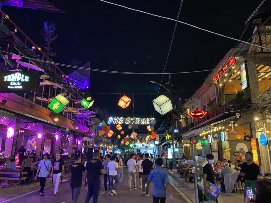 Si vous visitez pendant la saison sèche, de novembre à avril, vous pouvez également choisir de profiter d’une vue panoramique du complexe de temples emblématique, Angkor Vat, à partir d’une montgolfière. Dans la soirée, visitez le restaurant Kanell pour déguster des plats cambodgiens préparés avec art et assister à un spectacle de danse Apsara, un spectacle khmer classique qui trouve ses racines dans la mythologie hindoue et bouddhiste. Après le dîner, continuez vers Pub Street, un centre animé de divertissement, de restauration et de vie nocturne, pour boire un verre et danser un peu, ou flânez dans l’un des nombreux marchés nocturnes le long de la rue pour faire du shopping.