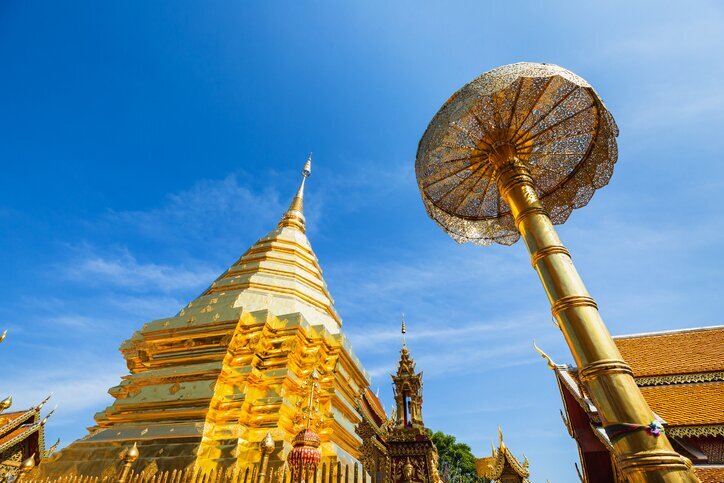 Fondé en 1383 de notre ère, le temple est accessible en gravissant 309 marches (ou pour les moins sportifs, un tramway est disponible moyennant un petit supplément). L’ascension est récompensée par une superbe vue panoramique sur la ville. Retour à Chiang Mai et promenade de 20 minutes en rickshaw dans les rues tranquilles de la vieille ville avant de rentrer à l’hôtel.