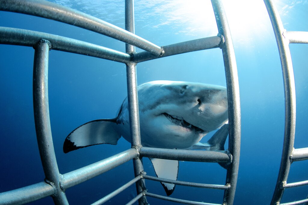 Enfilez votre maillot de bain et roulez 30 minutes jusqu’à Gansbaai, où vous pourrez plonger avec les grands requins blancs dans une cage sécurisée. Suivez les consignes de sécurité, puis sautez sur un bateau à la recherche des requins. Lorsque votre capitaine les trouve, vous entrez à tour de rôle dans la cage à l’épreuve des requins et descendez lentement dans l’eau. Vous pouvez toujours voir les requins depuis le bateau, alors ne vous inquiétez pas de les manquer. Une fois que tout le monde a eu son tour, retournez sur le rivage et réchauffez-vous avec une soupe chaude. De retour à votre hôtel, prenez une douche et changez-vous, puis repartez pour un dîner au Bientang\’s Cave Restaurant, situé dans les profondeurs d’une ancienne grotte surplombant l’océan.