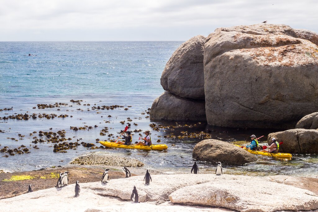 Ce matin, vous faites vos adieux aux vignobles du Cap en reprenant la route vers la pittoresque ville portuaire du Cap. Laissez les vignobles vallonnés et les montagnes imposantes derrière vous pendant que le trajet d’une heure et demie vous emmène à travers des vallées pittoresques et des terres agricoles verdoyantes. En descendant vers la côte, la silhouette emblématique de la montagne de la Table se dessine. À votre arrivée dans la ville, déposez votre voiture de location, prenez possession de votre hôtel et rafraîchissez-vous avant de vous rendre à Simon’s Town, à une heure au sud, pour faire du kayak avec la colonie de pingouins africains de Boulder’s Beach, située à proximité.