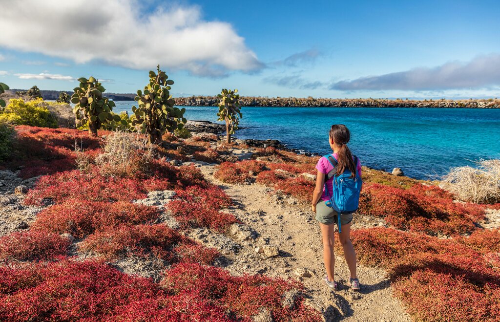 Levez-vous et brillez, car vous partez pour les îles ! Retournez à l’aéroport tôt ce matin et embarquez pour un vol de deux heures à destination des Galápagos. Cet archipel de 13 îles volcaniques principales n’a plus besoin d’être présenté. Les écosystèmes des îles ont attiré Charles Darwin et inspiré sa théorie de la sélection naturelle. Vous arriverez à Baltra, un îlot adjacent à Isla Santa Cruz, l’une des 13 îles principales des Galápagos.