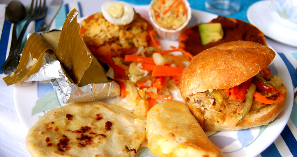 La pupusa est considérée comme le plat national du Salvador. On la trouve partout, des stands de nourriture de rue aux restaurants haut de gamme. Ce délicieux plat se compose d’une épaisse tortilla de maïs faite à la main et remplie d’une variété d’ingrédients tels que du fromage, du chicharrón (porc frit transformé en pâte), du bœuf, du poulet, des haricots frits et des légumes comme la courge. Elle est généralement accompagnée d’une salade de chou mariné appelée curtido et d’une salsa roja (sauce tomate).