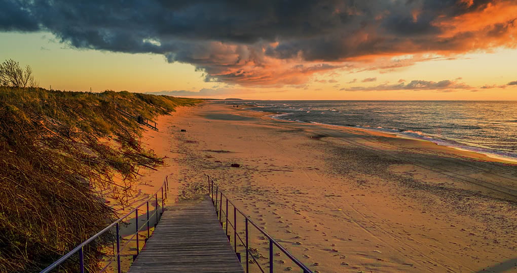 L’isthme de Courlande est une péninsule de dunes de sable de 98 km qui remonte à la préhistoire et qui sépare la lagune de Courlande de la mer Baltique. Elle est divisée entre la Lituanie et Kaliningrad, en Russie. À proximité, le petit village de pêcheurs de Nida présente des maisons traditionnelles en bois, des façades colorées, des dunes dorées et bien d’autres choses encore. Les eaux peu profondes sont propices à la baignade, à condition de braver les eaux fraîches et rafraîchissantes de la Baltique.