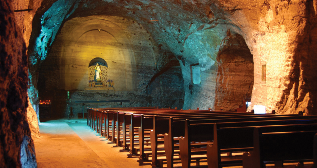 La cathédrale de sel est une église catholique romaine construite sous terre dans les tunnels de la mine de sel dans la montagne de halite près de la ville de Zipaquira, à une heure de Bogota. La cathédrale fait partie d’un complexe plus vaste appelé Parc du sel, qui comprend un musée de l’exploitation minière, de la minéralogie, de la géologie et des ressources naturelles, la principale attraction étant la cathédrale, considérée comme un « joyau de l’architecture moderne ». À l’intérieur de la cathédrale se trouve une riche collection d’œuvres d’art, en particulier des sculptures en sel et en marbre. Outre sa beauté, la cathédrale reste une église en activité qui accueille de nombreux visiteurs, religieux ou non.