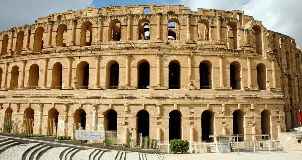 À un peu plus de deux heures de Tunis, l’impressionnant amphithéâtre d’El Djem s’élève dans le désert. À l’époque de son apogée, il s’agissait du troisième plus grand amphithéâtre de l’Empire romain et de la plus grande structure romaine d’Afrique du Nord, dans la ville anciennement connue sous le nom de Thysdrus. Ce théâtre était utilisé dans le même but que le Colisée, opposant des gladiateurs à des animaux pour le divertissement, et il est remarquablement bien conservé à ce jour. Les trois étages d’un côté sont entièrement en place, avec tous les escaliers et les galeries d’observation intacts, ainsi que le sous-sol qui abritait les animaux et les combattants.