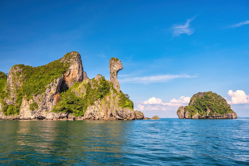 Aujourd’hui, vous allez explorer les populaires îles Phi Phi, qui attirent de nombreux voyageurs dans la région. Montez à bord d’un bateau et partez à la découverte de ce groupe d’îles, qui abrite des plages immaculées, des eaux cristallines et une vie marine intense. Commencez votre excursion à Ko Phi Phi Ley, rendue célèbre par le film « La plage », tourné à Maya Bay. Profitez des vues de la baie turquoise depuis le bateau et continuez à faire le tour de l’île jusqu’à Pileh Cove pour nager dans les eaux chaudes.