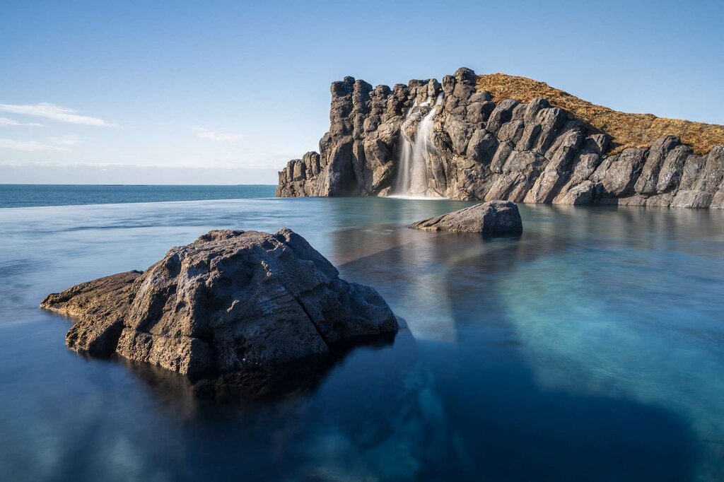 Plus tard, vous pourrez vous remettre de votre long vol en profitant d’une séance de spa relaxante au Sky Lagoon, une source d’eau chaude naturelle située dans un port au sud de la ville. Profitez du rituel en sept étapes, qui consiste à alterner des bains dans des sources chaudes relaxantes – dont la température oscille entre 38 et 40 °C – et des plongeons dans des eaux froides revigorantes.