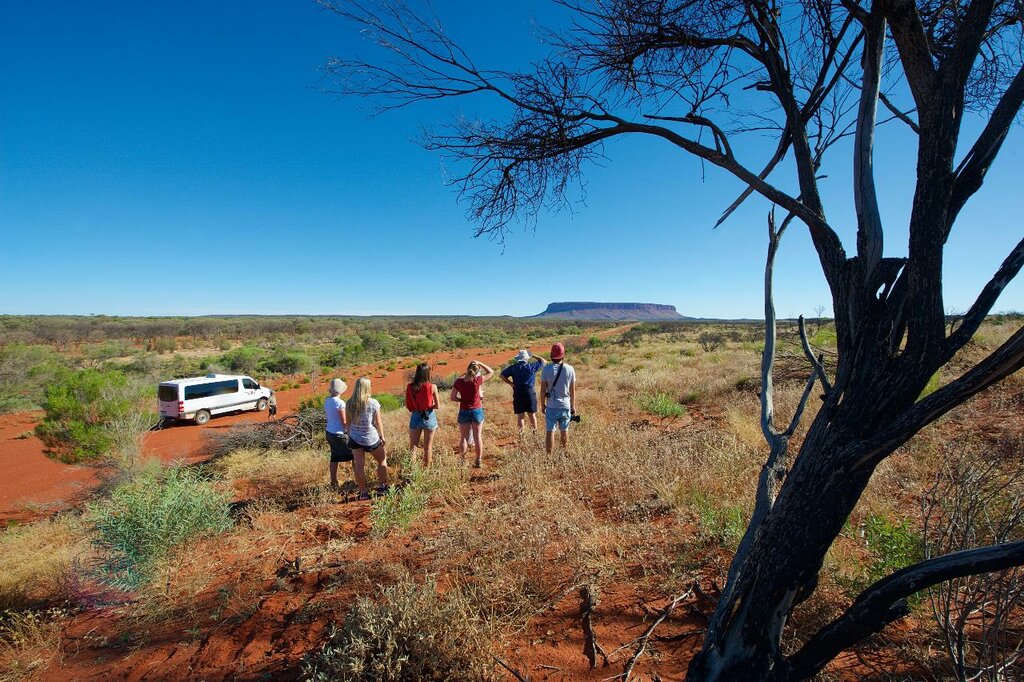 Cet après-midi, vous partirez pour une expérience unique et exclusive à Mount Conner, situé à 96,56 km (100 km) à l’est d’Uluru. C’est là que se trouve une vaste station d’élevage privée appelée Curtin Springs Station. À votre arrivée, vous sauterez dans un luxueux véhicule 4×4 et partirez à sa découverte. Vous verrez comment les barrages construits pour le bétail ont créé un habitat naturel parfait pour les kangourous rouges, les wallabies et une vaste gamme d’oiseaux et de reptiles qui ont élu domicile dans le Centre rouge australien. Vous découvrirez également un ancien lac salé intérieur et apprendrez l’histoire indigène et européenne de la région.