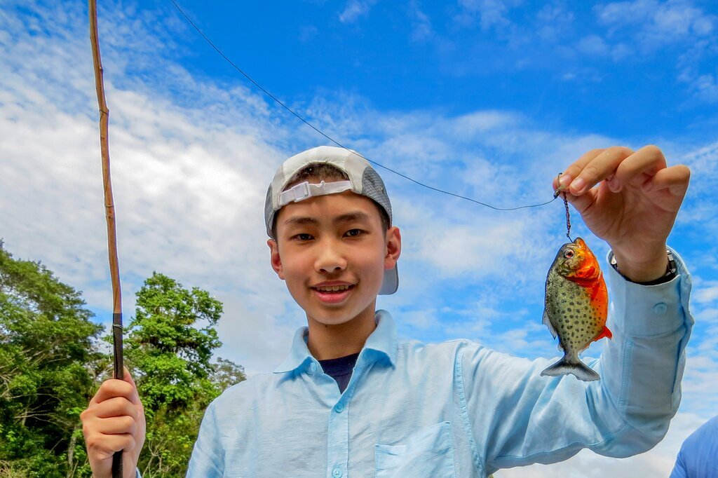 Plus tard, vous ferez une excursion de pêche passionnante dans une baie sur une rivière voisine, où, au lieu de pêcher le bar ou le poisson-chat, vous pêcherez le piranha, un poisson carnivore ! Vous rencontrerez votre guide et, après un briefing sur la sécurité, vous partirez sur l’eau, en déposant vos lignes dans les zones où les piranhas aiment se cacher. S’il est vrai que ces poissons aiment mordre, il n’y a aucun risque pour vous ou les petits, car votre guide s’occupera de tous les piranhas que vous remonterez. Les visiteurs seront peut-être surpris d’apprendre qu’il ne s’agit pas d’une simple pêche sportive : la piranha est considérée comme un mets délicat et entre dans la composition d’une délicieuse soupe régionale, le caldo de piranha.