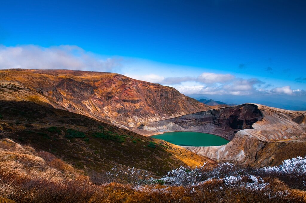 Ce matin, vous prendrez un bus d’une heure depuis Yamagata jusqu’à un parking situé juste en dessous du pic Kattadake. Faisant partie d’une chaîne de montagnes volcaniques s’élevant à 1 800 m, le mont Zao est situé à la frontière entre les préfectures de Yamagata et de Miyagi et possède certains des paysages naturels les plus splendides de tout le pays. Son cratère abrite un lac de caldeira de couleur turquoise, le cratère d’Okama, qui est un élément incontournable de toute visite du mont Zao. Depuis le parking où vous descendez du bus, prenez un télésiège jusqu’au pont d’observation pour une vue imprenable sur cette merveille naturelle.