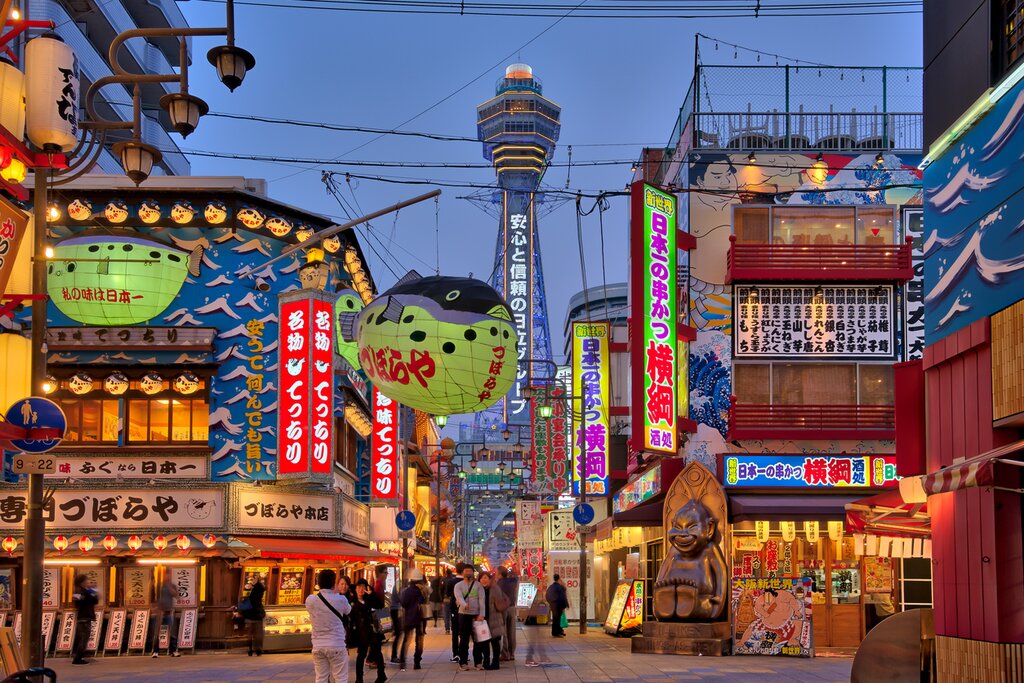 Le prochain quartier est Dotonbori, un ancien quartier des théâtres devenu la Mecque des restaurants. Surnommé le « Times Square d’Osaka », ce quartier à forte concentration sensorielle de néons, de grands immeubles et de foules affairées propose des stands de nourriture, des arcades de jeux et de nombreuses possibilités de shopping. Dégustez des plats tels que des crabes grillés, des takoyaki (boules remplies de légumes et de fruits de mer) ou des taiyaki (pâtisseries en forme de poisson) pour les enfants.