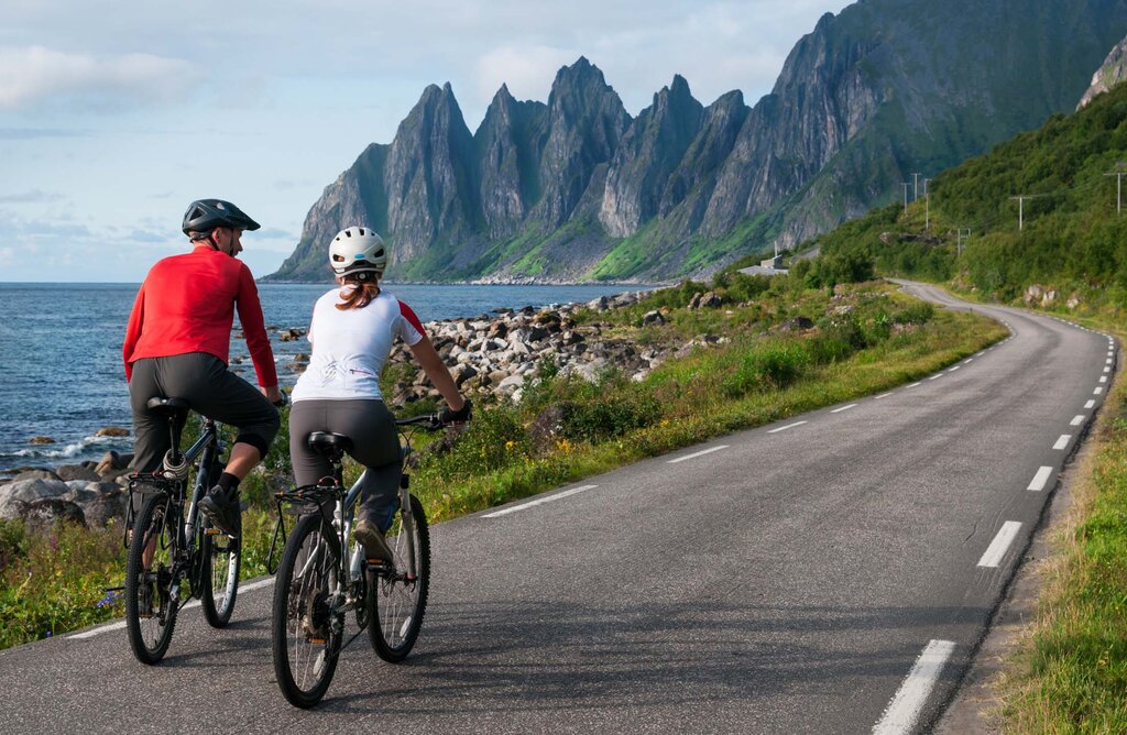 Prenez votre casque et votre bouteille d’eau, car vous partez ce matin pour une journée entière de randonnée à vélo dans les paysages sauvages et préservés de Senja. Cette excursion est plus axée sur le paysage que sur l’endurance, car votre vélo électrique moderne portera une grande partie du fardeau. Tout au long du voyage, vous suivrez des routes sinueuses le long de fjords scintillants, traverserez des villages colorés et franchirez des sommets imposants. Les arrêts ne manqueront pas pour prendre des photos aux points de vue panoramiques.