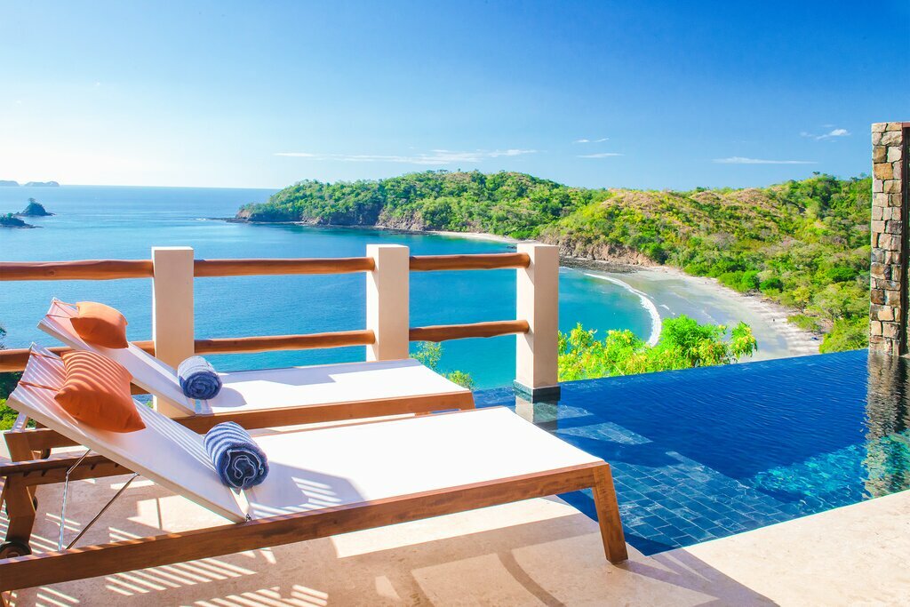 Située sur la péninsule de Nicoya au Costa Rica, Papagayo est une destination de villégiature populaire en raison de ses plages de carte postale comme Playa Panama et Playa Hermosa. Vous séjournerez à la Casa Chameleon, un hôtel 4 étoiles situé sur une crête surplombant la ville balnéaire décontractée de Las Catalinas. Les villas et les suites de l’hôtel sont équipées de terrasses privées, avec leur propre piscine d’eau salée. Si vous voulez quelque chose de plus substantiel, plongez dans la piscine à débordement de l’hôtel et, si vous avez faim, dînez en plein air au restaurant de l’hôtel tout en profitant de vues imprenables sur la côte.