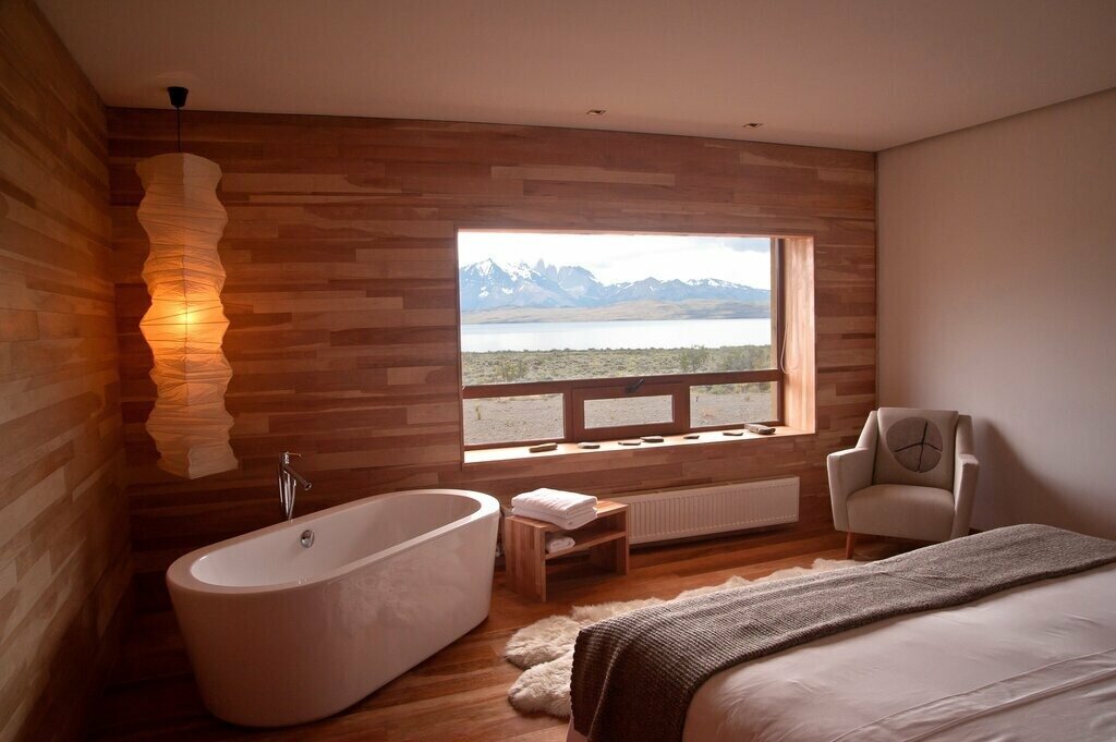 Inutile d’admirer les Torres del Paine de loin, puisque vous logerez à proximité du parc. Le Tierra Patagonia Hotel & Spa se trouve à l’extrémité est du Lago Sarmiento, l’un des lacs les plus célèbres et les plus pittoresques du parc. Il s’agit d’un hôtel de charme 4 étoiles dont les chambres spacieuses et confortables sont conçues dans un style scandinave moderne et offrent une vue imprenable sur le lac et les pics de granit du massif du Paine. Après avoir déposé vos bagages, n’hésitez pas à vous détendre en faisant un plongeon dans la piscine intérieure chauffée ou en vous rendant dans le jacuzzi extérieur pour un bon bain.