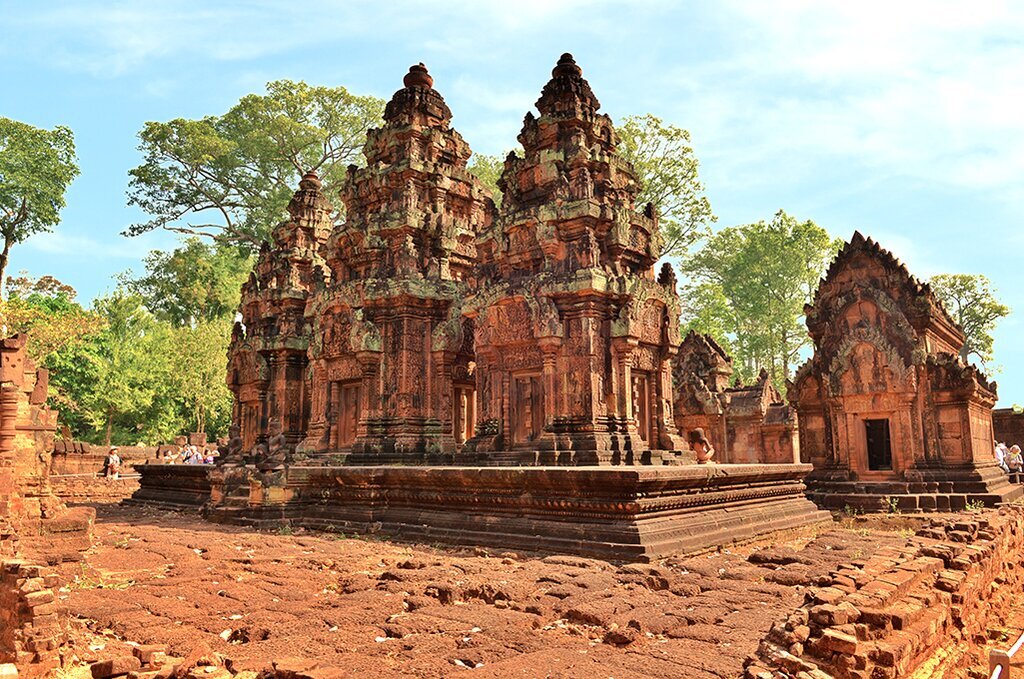 Dans l’après-midi, vous vous rendrez à Ta Prohm, construit entre la fin du XIIe et le début du XIIIe siècle. Ses ruines sont enchevêtrées dans les arbres et les vignes de la forêt et ont été présentées dans les films Tomb Raider. Vient ensuite Ta Keo, un temple-montagne inachevé antérieur à Angkor Vat. Ses cinq tours sanctuaires sont placées sur une pyramide de 22 mètres de haut, offrant une vue imprenable sur le paysage parsemé de temples.