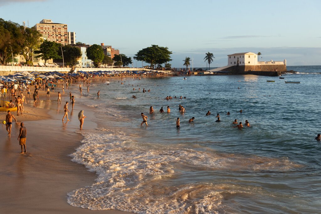 Vous trouverez également sur la place l’emblématique Elevador Lacerda, qui peut vous emmener jusqu’au quartier historique du Pelourinho, connu pour avoir la plus grande collection de bâtiments coloniaux d’Amérique latine. Dans la soirée, rendez-vous à la Praia do Porto da Barra, l’une des plages les plus populaires de la ville. Son orientation vers l’ouest en fait l’endroit idéal pour regarder le soleil plonger sous l’horizon, transformant le ciel en une toile vibrante d’oranges, de roses et de violets. De nombreux restaurants se trouvent le long de la plage, ce qui vous permet de manger un morceau face à l’eau avant de retourner à votre hôtel.
