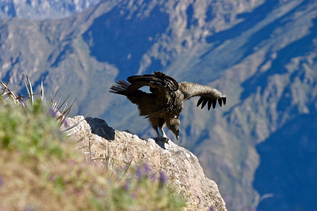 Tôt ce matin, vous rencontrerez votre guide et serez transféré au Mirador Cruz del Condor, l’un des points de vue les plus populaires sur le canyon, qui tombe à près de 1 220 m en contrebas. C’est aussi le meilleur endroit pour voir le majestueux condor des Andes en vol, qui s’envole sur les courants thermiques s’élevant du canyon. Observez ces oiseaux géants, dont l’envergure peut atteindre 3 m, prendre leur envol et planer gracieusement sur les courants d’air chaud. Au-delà des condors, le point de vue offre une vue imprenable sur les champs en terrasse et les villages isolés nichés dans les parois du canyon.